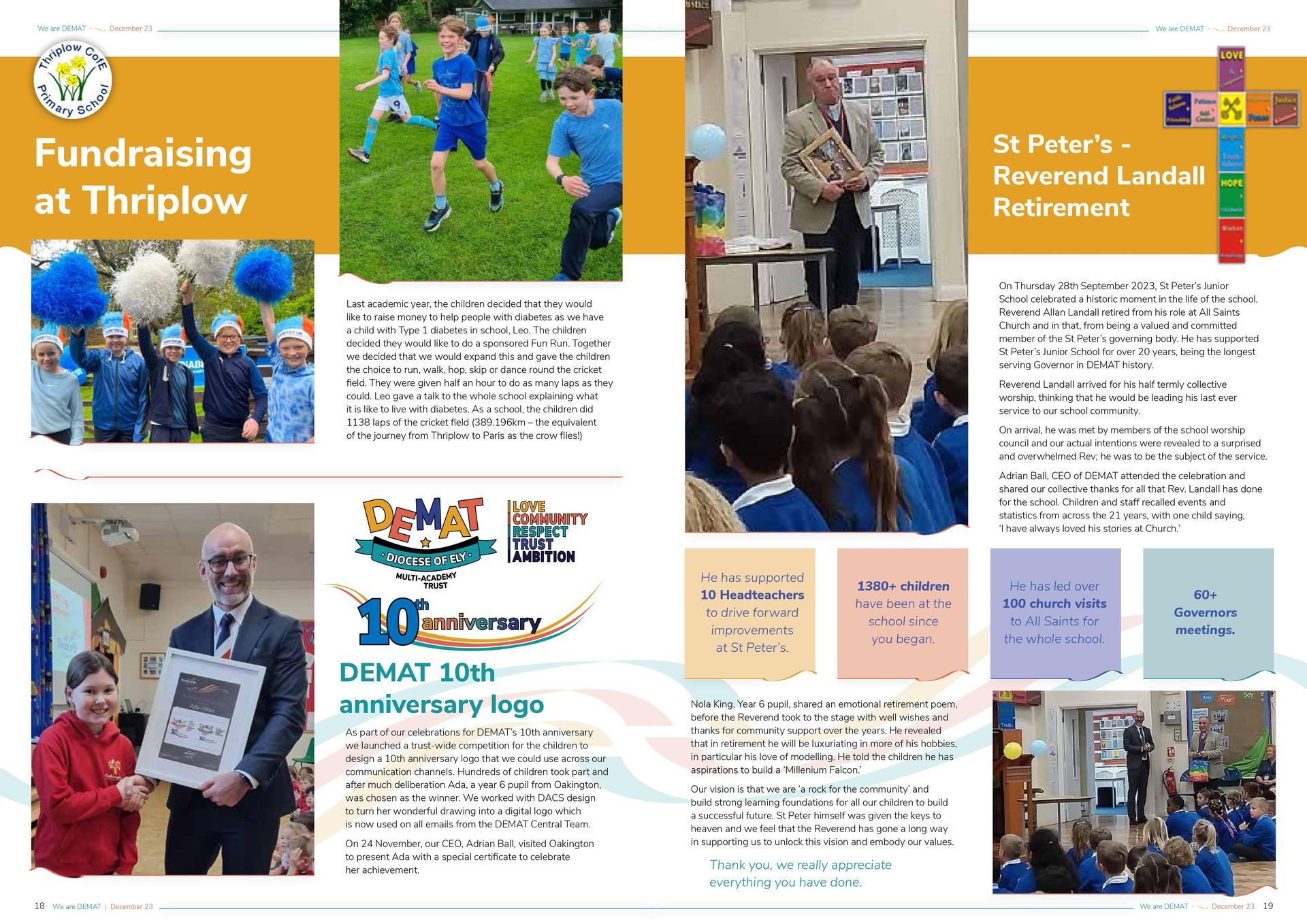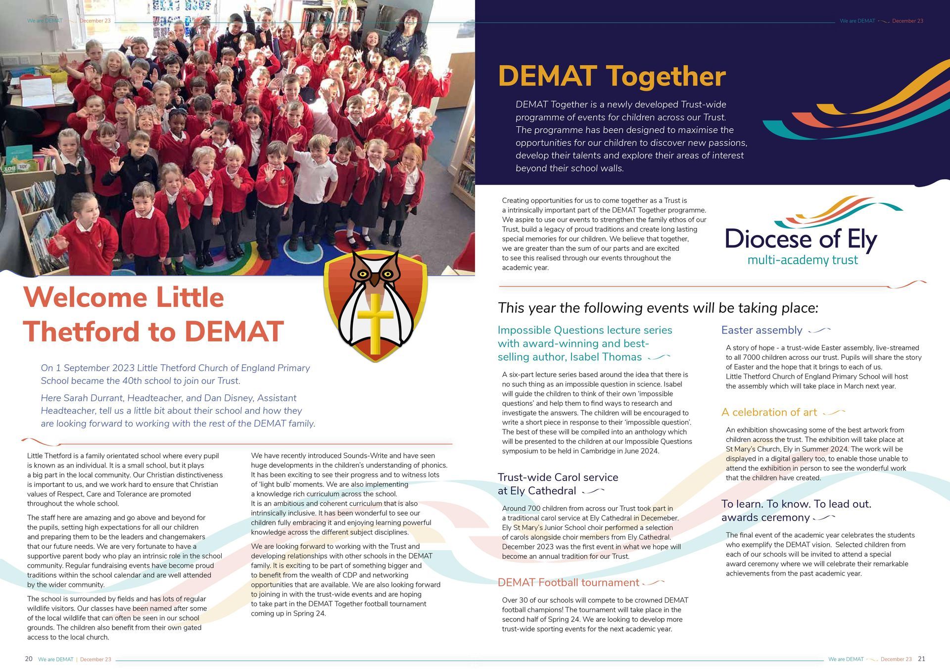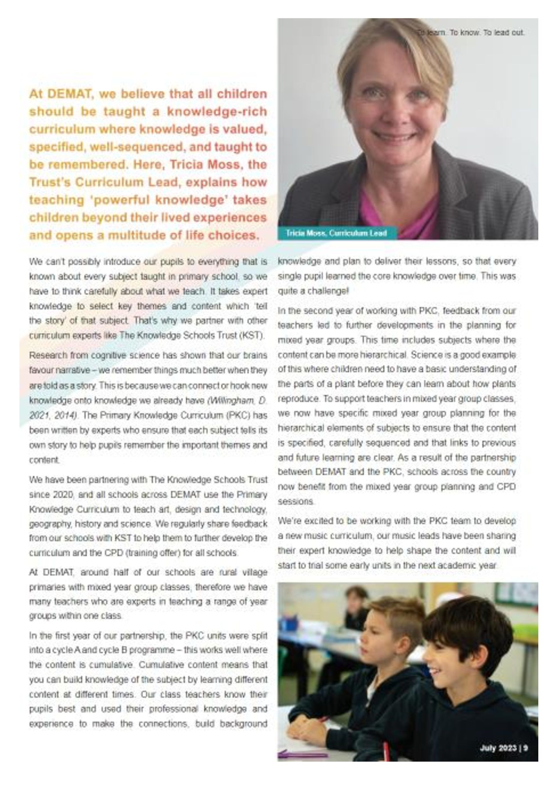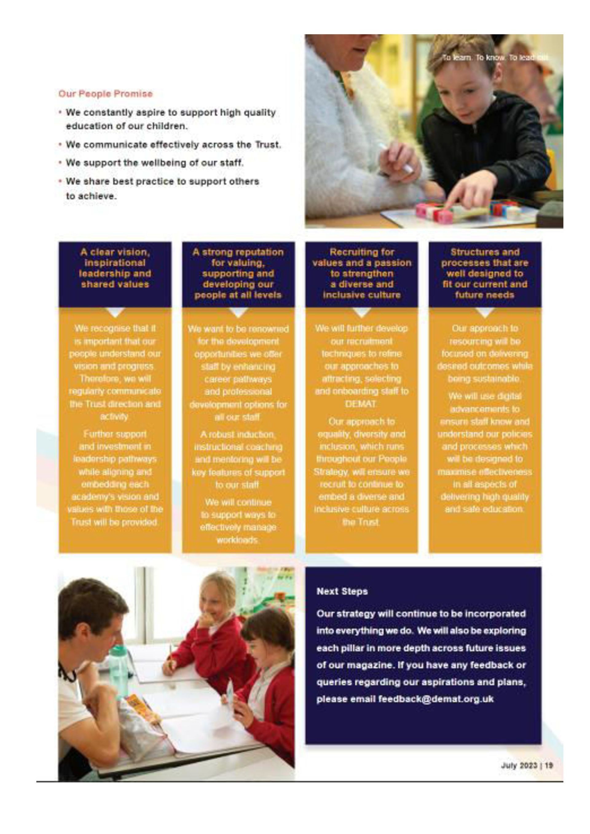At DEMAT, we pledge to put children at the heart of everything we do. That is made possible by our incredible team of staff, both in schools and our Central team, who are committed to this and supported by our overarching values of love, community, respect, trust and ambition.